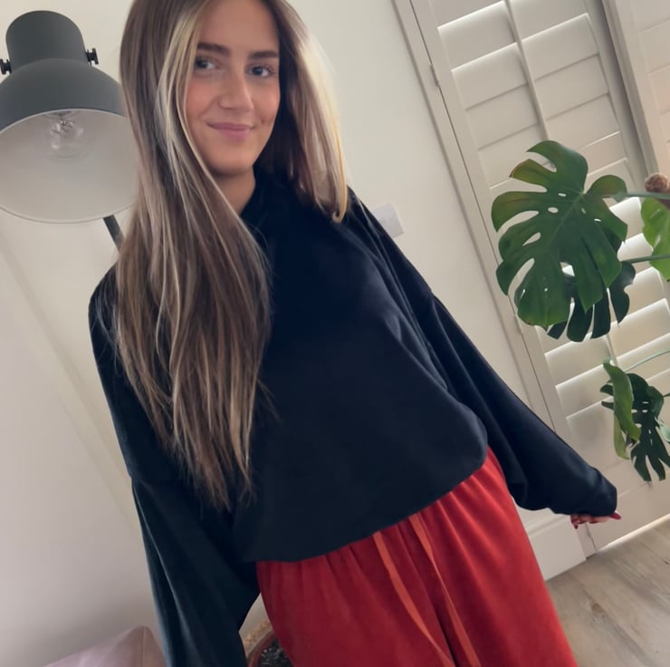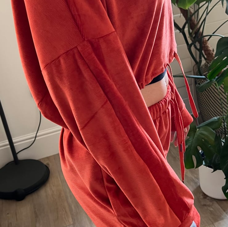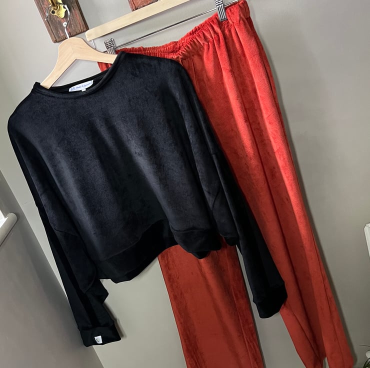 Our super soft Britney Joggers are made from slouchy velour in a beautiful burnt orange shade. These gorgeous joggers features a drawstring and is finished with a Violet logo. Create the perfect coordinated look with our sweaters and add your favourite trainers for a casual Sunday look. Also perfect for lounging in style. Mix and match with our Britney Sweater, available in black.