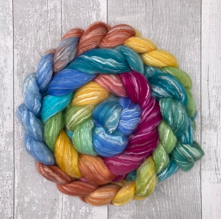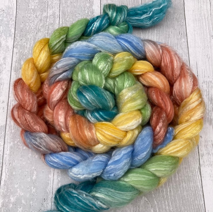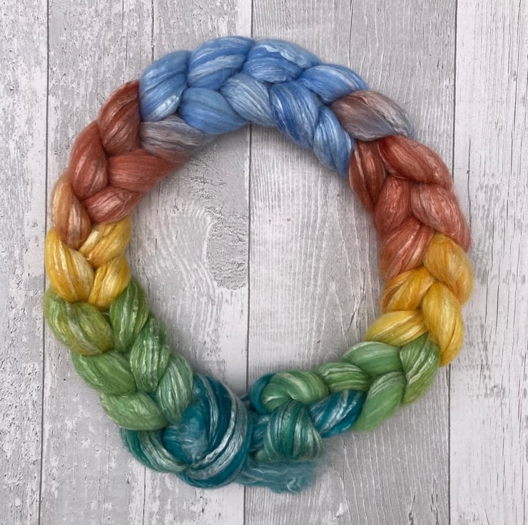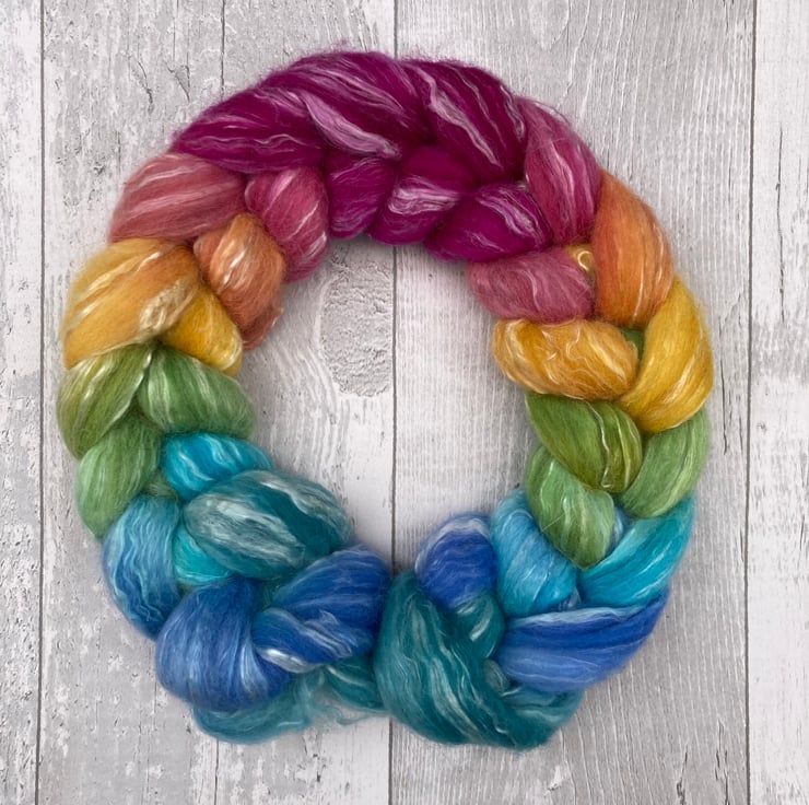 This gorgeous fibre is dyed as a short block mirror gradient and these fibre blends are as fluffy as clouds!