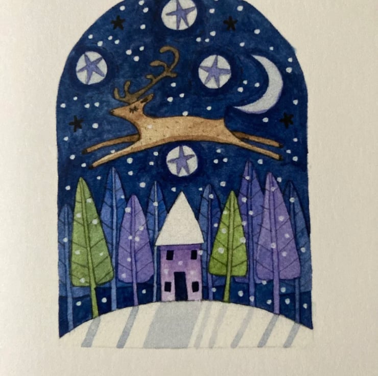 A bundle of four cards, 80 x 210mm, supplied with envelope and blank inside. These designs are also available with handwritten greeting and star sequins; please see other listing. Thankyou!