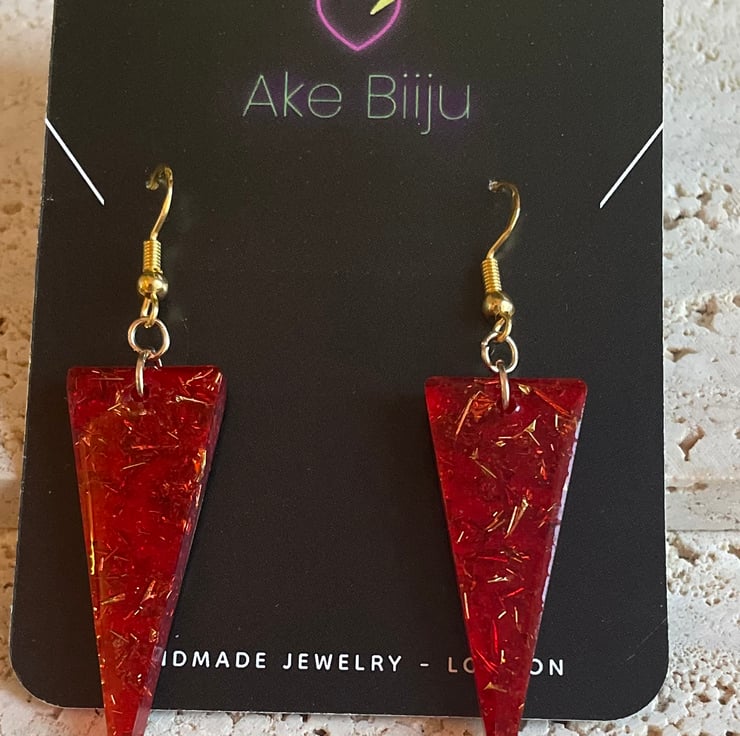 Handmade in Uk Resin Red Gold 925 gold plated hooks