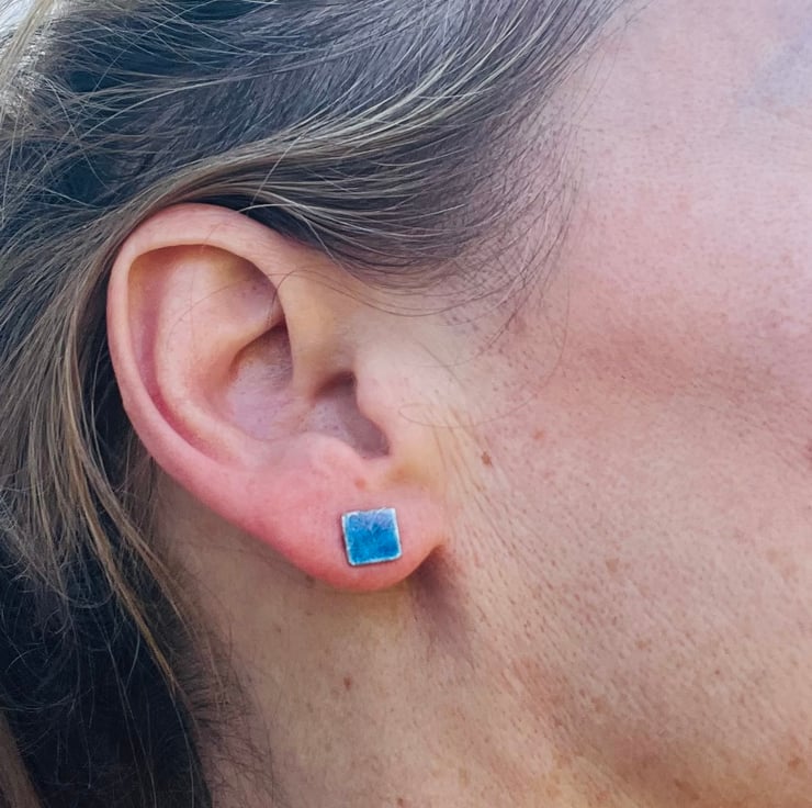 Enamel studs, blue enamel studs, square studs, enamel, silver studs,