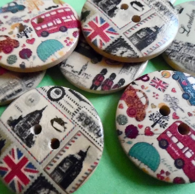They are printed on one side with scenes of London and the back is plain natural wood