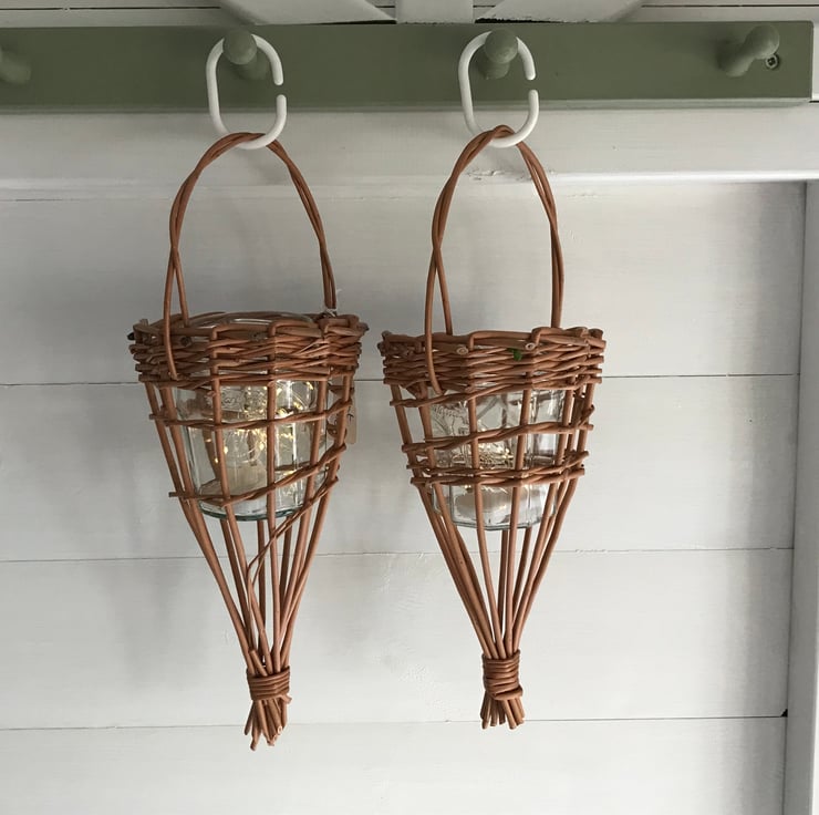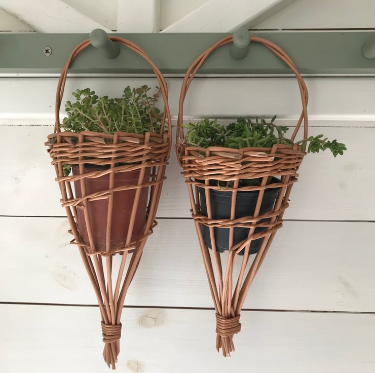 A spiral weave pot plant hanging basket with a twisted willow handle. Looks fabulous with a small trailing plant - or add a small jam-jar full of sparkling lights or pretty flowers from the garden. Tiny succulent plants - they look gorgeous trailing from these - and don’t need much watering attention.
