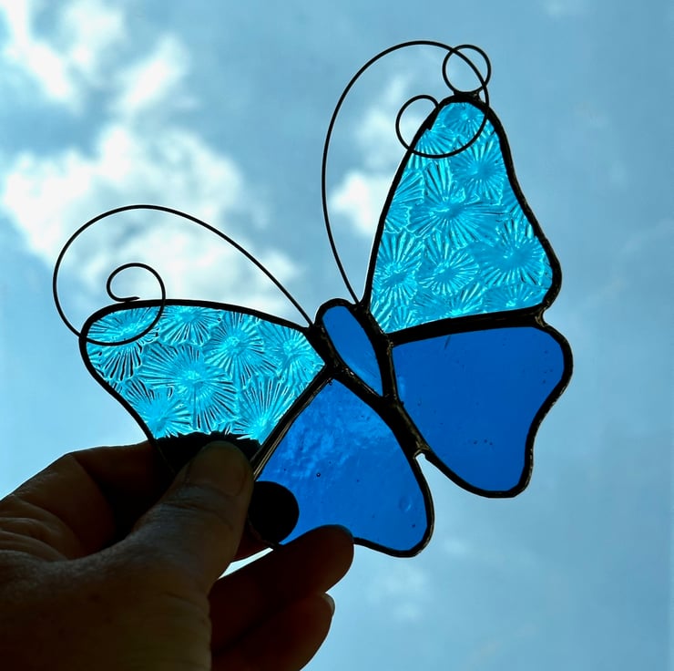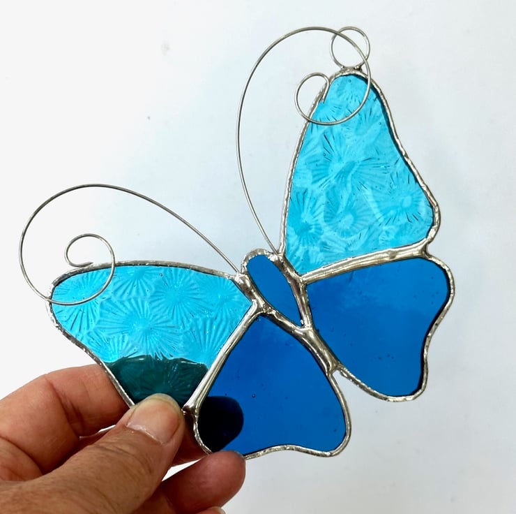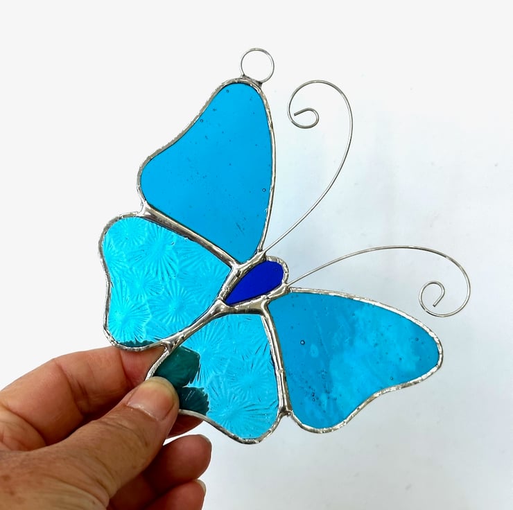 I have 2 butterflies made in different types of turquoise glass butterfly; one in dark and pale turquoise glass and one in two shades of pale turquoise. You will be asked to state which butterfly you would like before you can checkout.