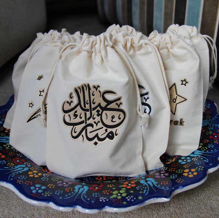 Elevate your Eidi by gifting it in this cute little canvas pouch. Perfectly sized for money, small treats or sweets. Sure to bring a smile to your friends, family or neighbours.