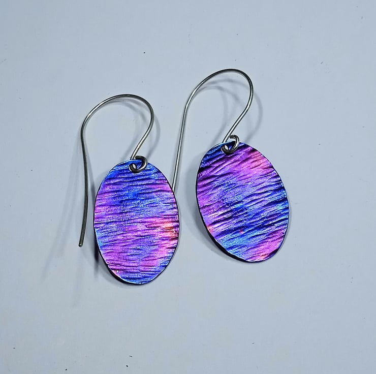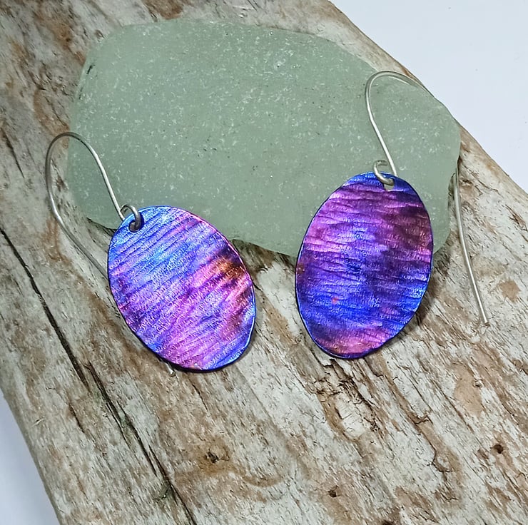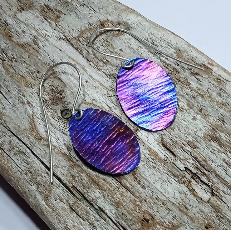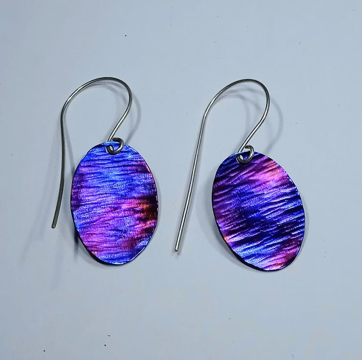 These beautiful lightweight titanium earrings display an attractive range of shades which really come to life when the light hits them.
