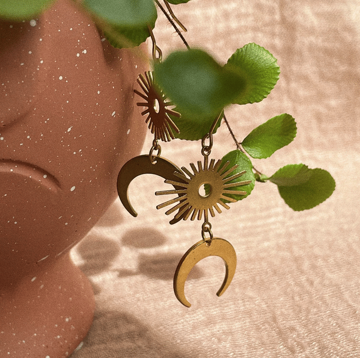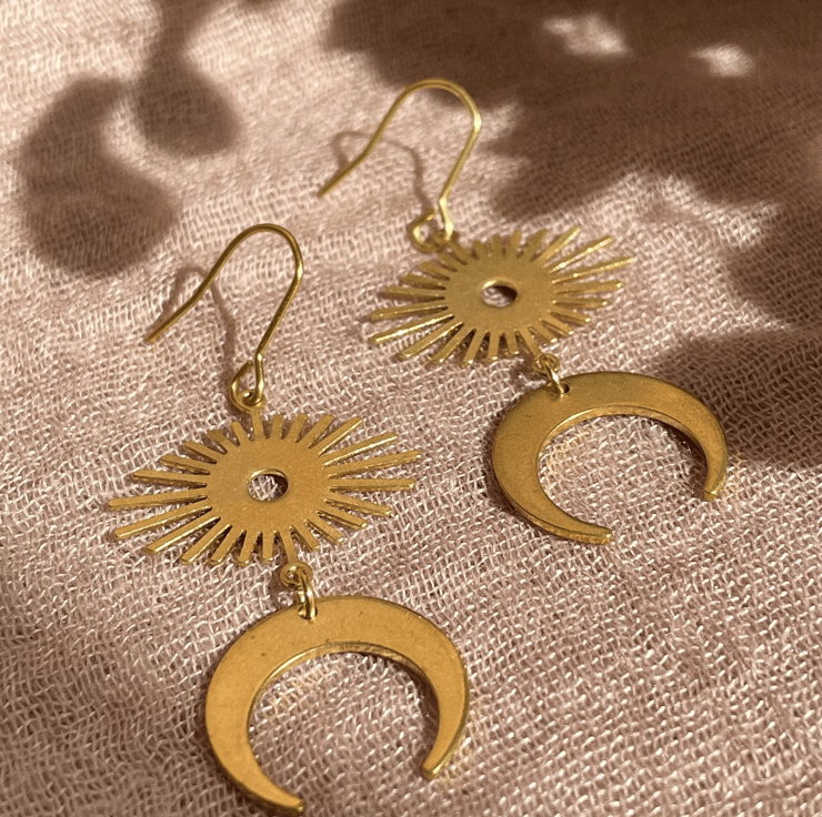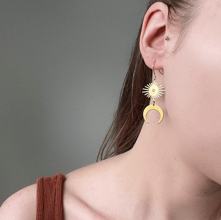 Earrings are made from raw nickel & cadmium free brass. Raw brass develop patina over time and can be left or cleaned using soft cloth.