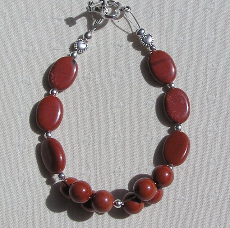 This Stunning Bracelet is made from Red Jasper – Oval & Round Beads separated by tiny glistening silver spacer beads – A warming feel that will look stunning either worn casually or with something more Elegant for a Special Evening out