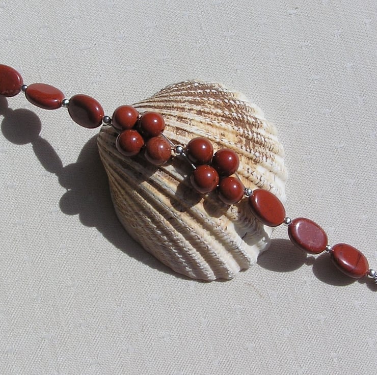 This Stunning Bracelet is made from Red Jasper – Oval & Round Beads separated by tiny glistening silver spacer beads – A warming feel that will look stunning either worn casually or with something more Elegant for a Special Evening out