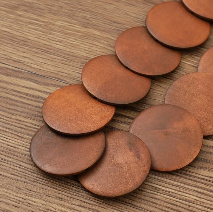 Wooden beads are always in, and these very light, earthy coloured discs are great to jazz up an outfit, just like that!...