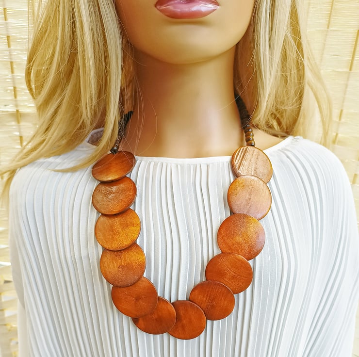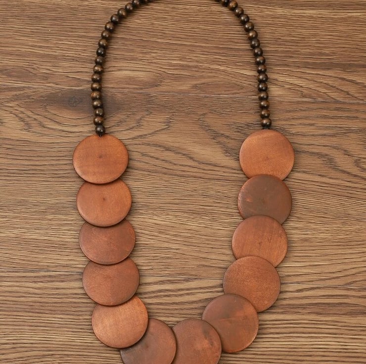A delightful wooden beads necklace featuring circular wooden discs throughout. These gorgeous warm and natural tones give a lovely rustic & earthy fashionable feel to your outfits. Would suit all you Boho style loving girls....