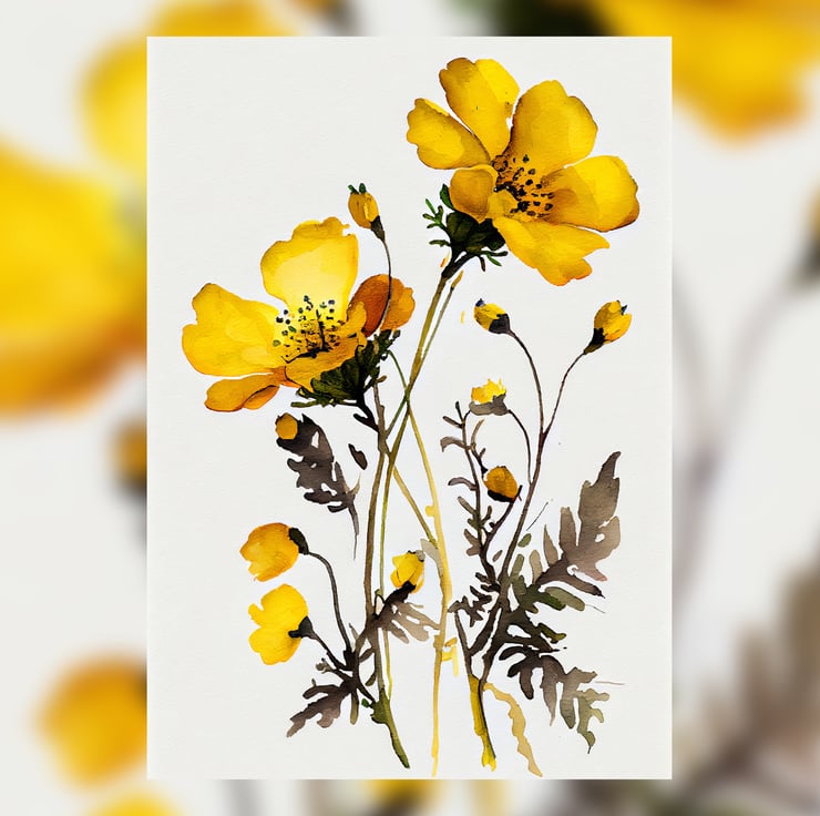 Experience the beauty of spring with our watercolor print featuring delicate buttercup flowers. This piece captures the charm of nature, making it a delightful addition to any room.