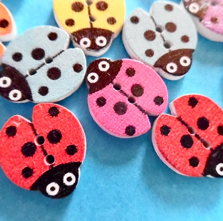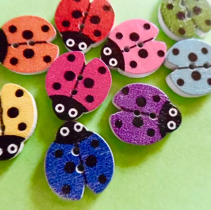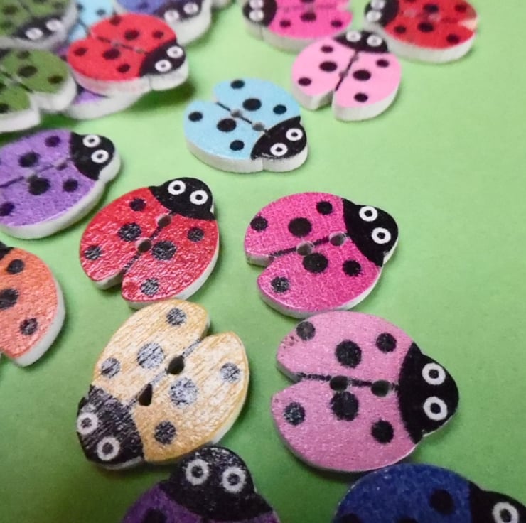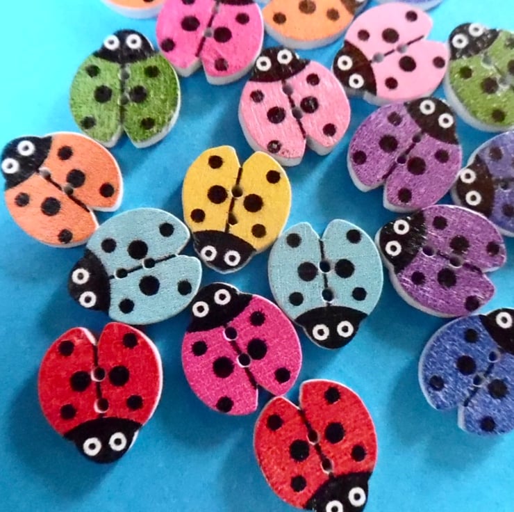 here are 10 ladybird shaped wood buttons