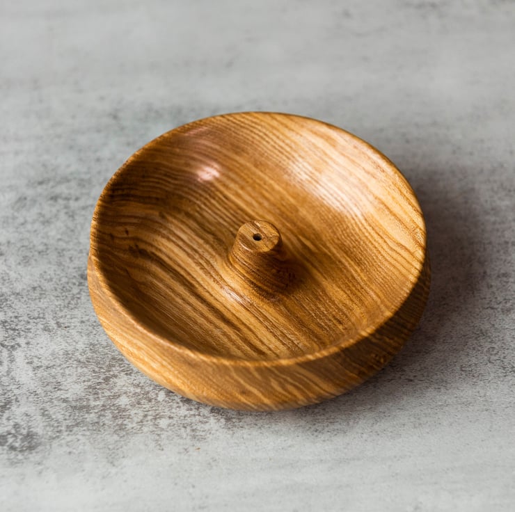 This incense holder is made of ash, a hardwood native to Europe and parts of Asia. The incense holder is designed to catch any ash that falls and will make a wonderful accessory for any home. Finished in Danish oil.