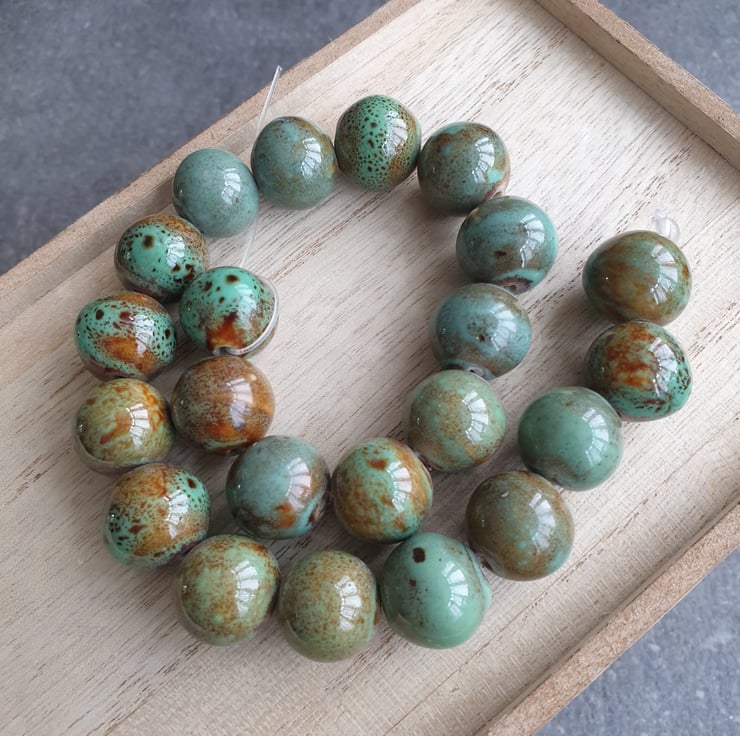 As the beads used in this necklace are handmade, they may vary slightly from the one pictured. The last picture shows an example of the current batch of beads - some are more speckled than others. If you have a preference as to more / less speckled please let me know and I'll do my best to accommodate this.