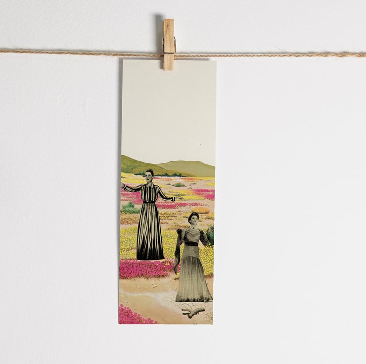 A surreal portrait bookmark for weird art lovers. Each one is double-sided with a different design on each side.