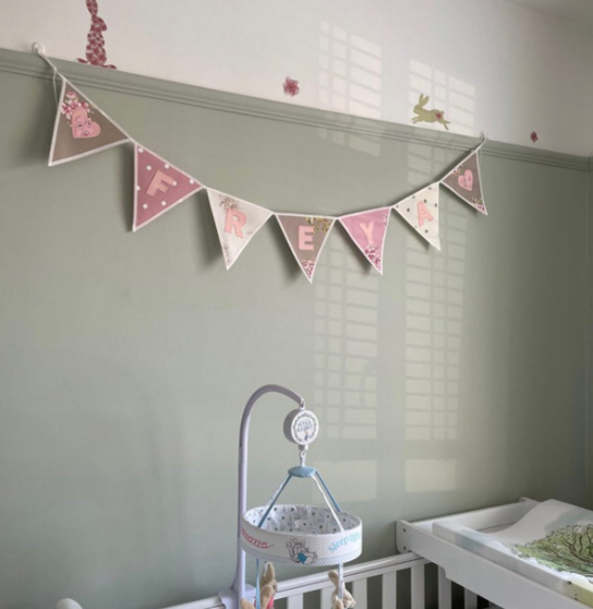 Each item is handmade in my Sussex studio where attention to detail is paramount. I specialise in personalised bunting; each length of bunting is bespoke, made with the name of your choice.