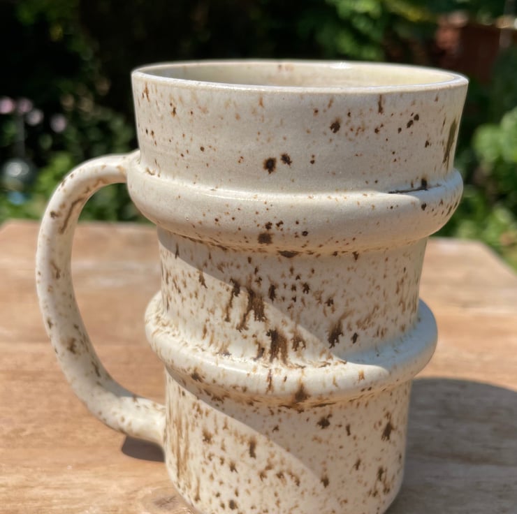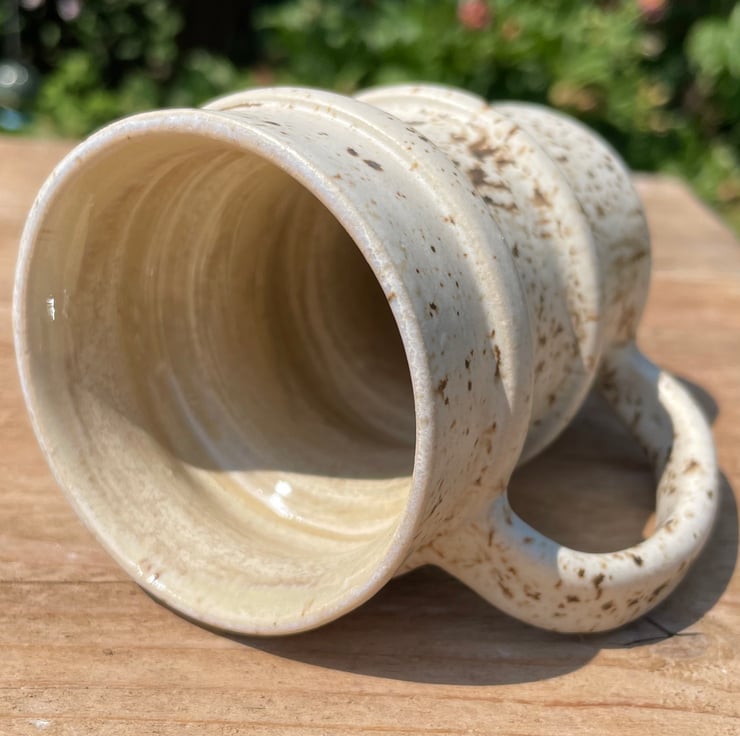 This mug has been hand thrown on a pottery wheel in stoneware clay.