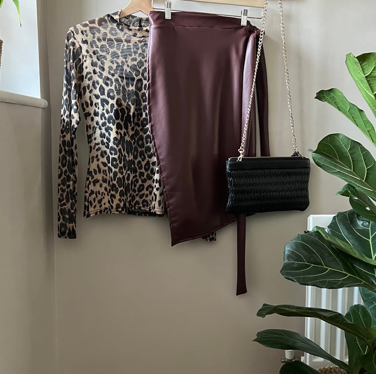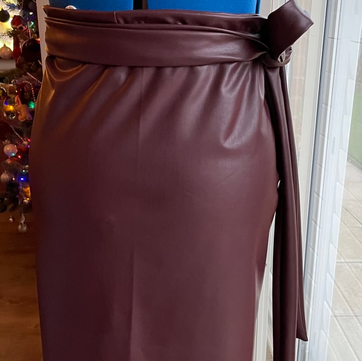 Last Chance to Buy, only 1 left. Our beautiful Mags Wrap Skirt is handmade from a smooth vegan leather with added stretch. This beautifully fitting skirt hugs every curve, with the added perk of a tie waist, tie to the sides, front or back - so versatile. Add strappy top, sandals and a clutch bag for a fabulous party look or add a shirt, jacket and heels for the perfect day/office look.