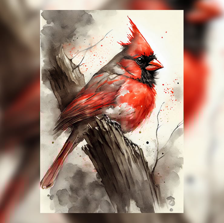 Order this watercolor painting print today, and let the sight of this peaceful cardinal in a tree infuse a sense of calm and tranquility into your space. This artwork serves as a vibrant yet soothing touch, making your home feel more peaceful and inviting.