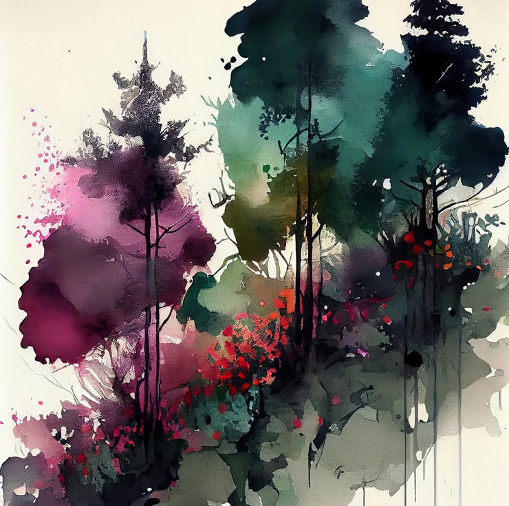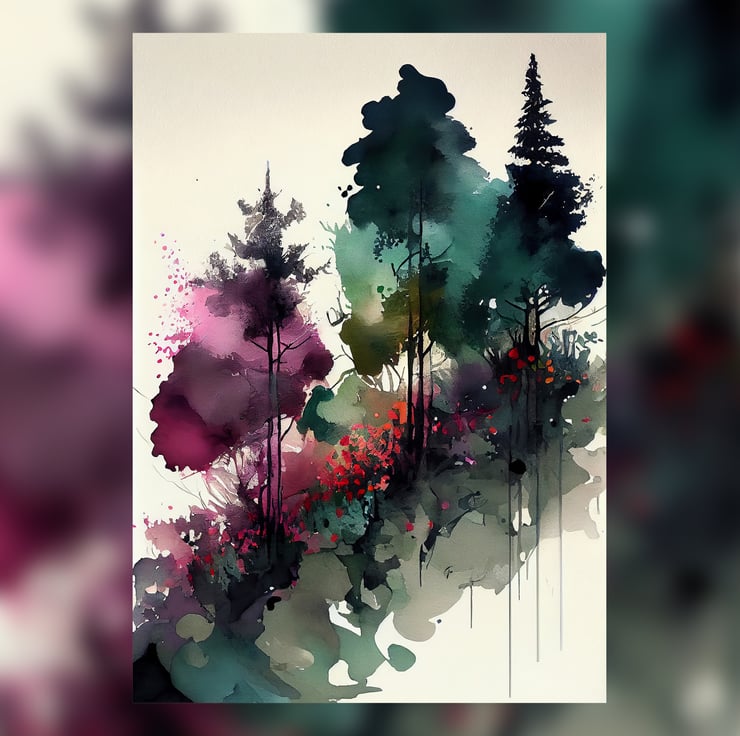 Order this watercolor painting print today, and let the sight of this peaceful pine forest infuse a sense of calm and tranquility into your space. This artwork serves as a vibrant yet soothing touch, making your home feel more peaceful and inviting.