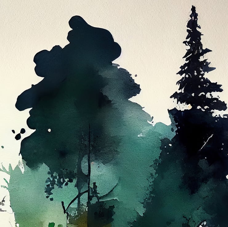 Bring the beauty of nature into your space with our watercolor painting print featuring a tranquil forest of pine trees. This piece captures the serene charm of wilderness life, making it a soothing addition to any room.