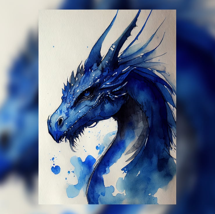 Order this watercolor painting print today, and let the sight of this powerful blue dragon infuse a sense of wonder and awe into your space. This artwork serves as a vibrant yet magical touch, making your home feel more adventurous and intriguing.