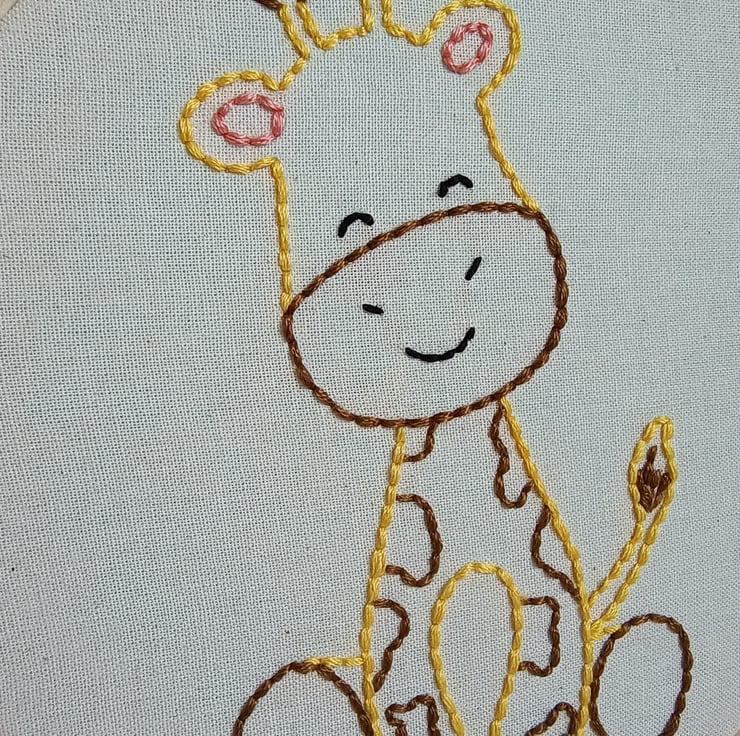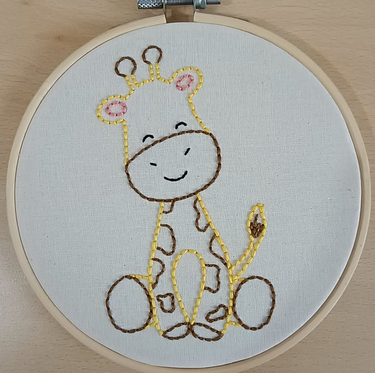 This giraffe embroidery hoop has been designed with hand sewing beginners in mind. It uses only one type of stitch (back stitch) to create the wonderful friendly character pictured. The giraffe is sewn using stranded embroidery thread within the hoop that then forms its frame. Step by step instructions complete with photographic images are included to make this project as user friendly as possible. One of the great things about this embroidery project is that it can be easily picked up and put down as a mindful activity without you loosing your place or the stitches unravelling. It makes a wonderful gift to those with creative personalities who would like to try their hand at a new skill.