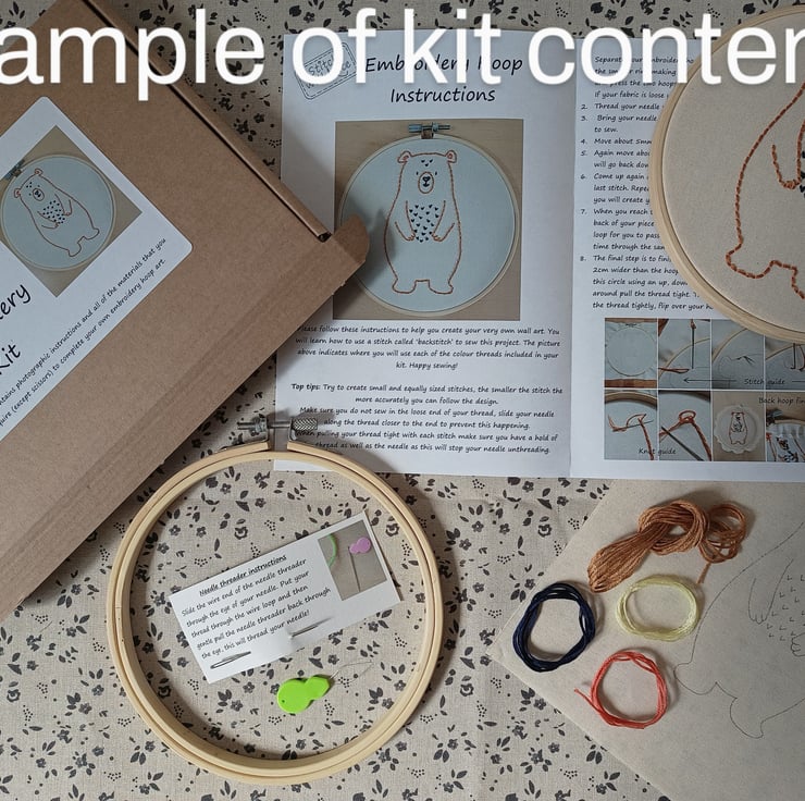 - A 6inch embroidery hoop with a screw fastening that will hold the cotton fabric taught for easy stitching as well as providing a display frame for the finished piece.