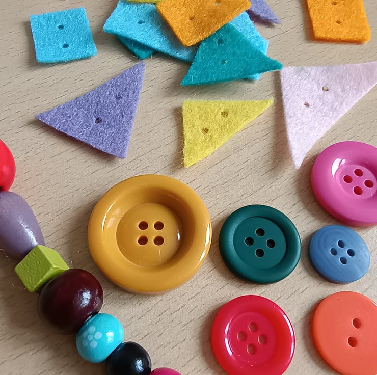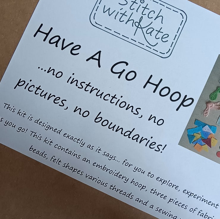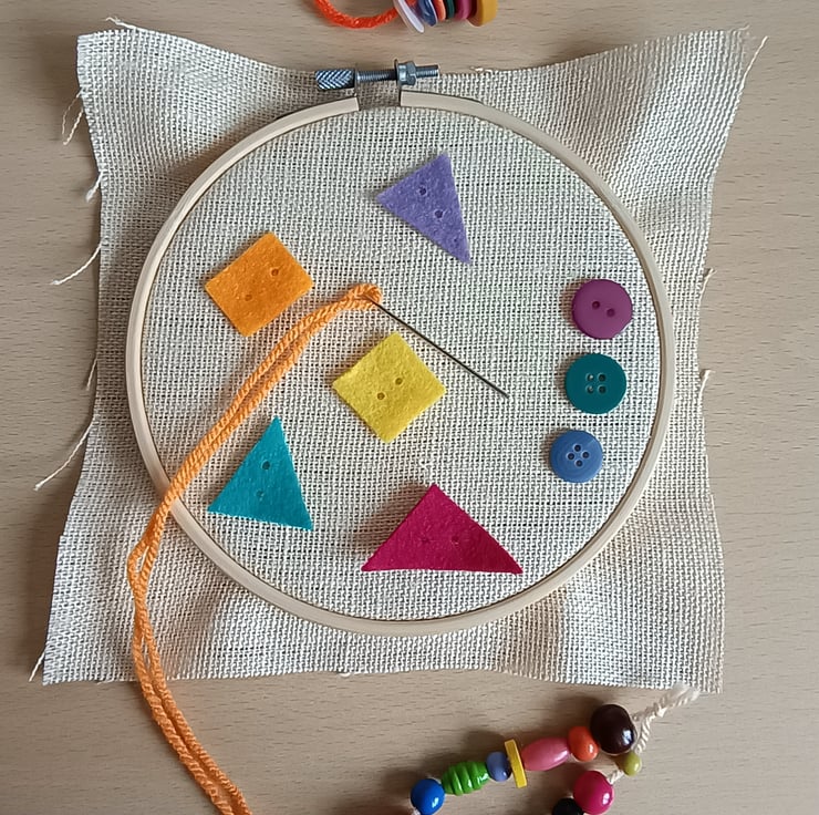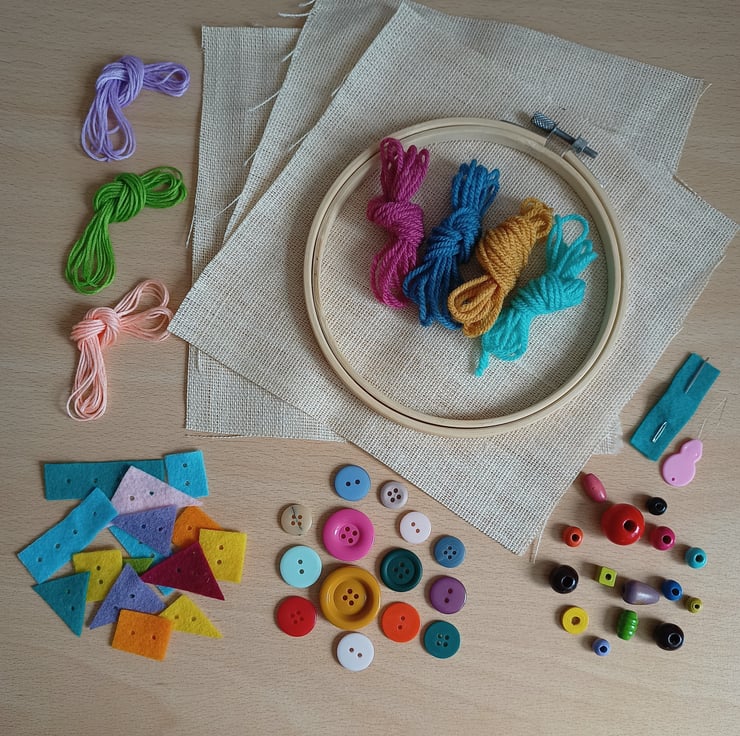 The 'Have A Go Hoop' is designed exactly as it says. It is an open ended beginner sewing kit that has been created for children to explore sewing in a safe, friendly and expectation free way. The free form nature allows their imagination and creativity to flow with the different threads and embellishments providing endless scope.