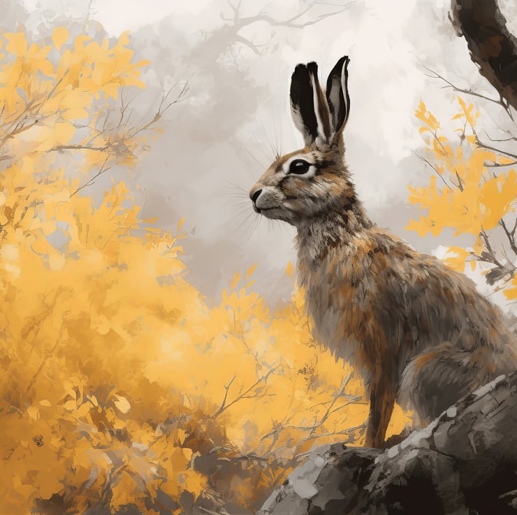 Order this watercolor painting print today, and let the sight of this gentle hare in the forest infuse a sense of tranquility and peace into your space. This artwork serves as a tribute to the beauty of woodland creatures, making your home feel more vibrant and connected with nature.