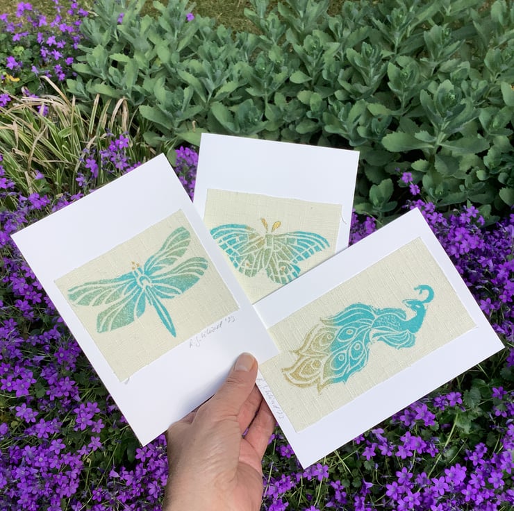 Each impression from the hand carved block is unique making the cards original pieces of art.