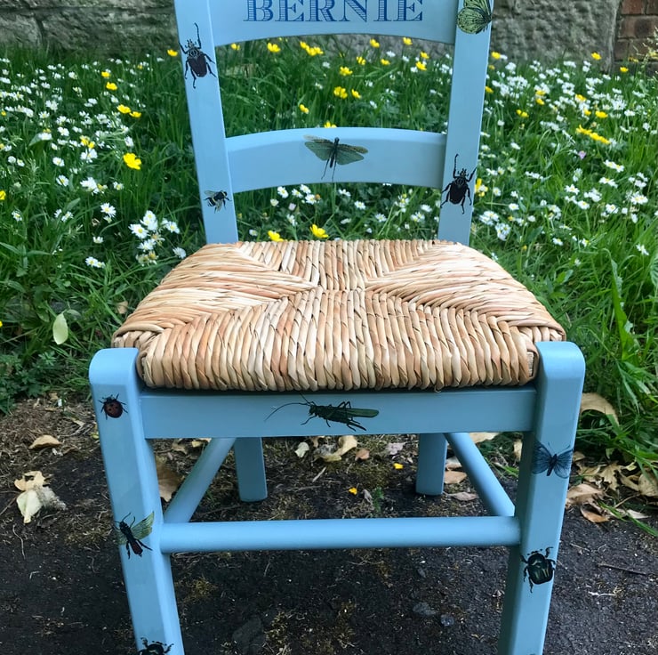 Rush seat personalised children's chair - Randon Bugs theme - made to order