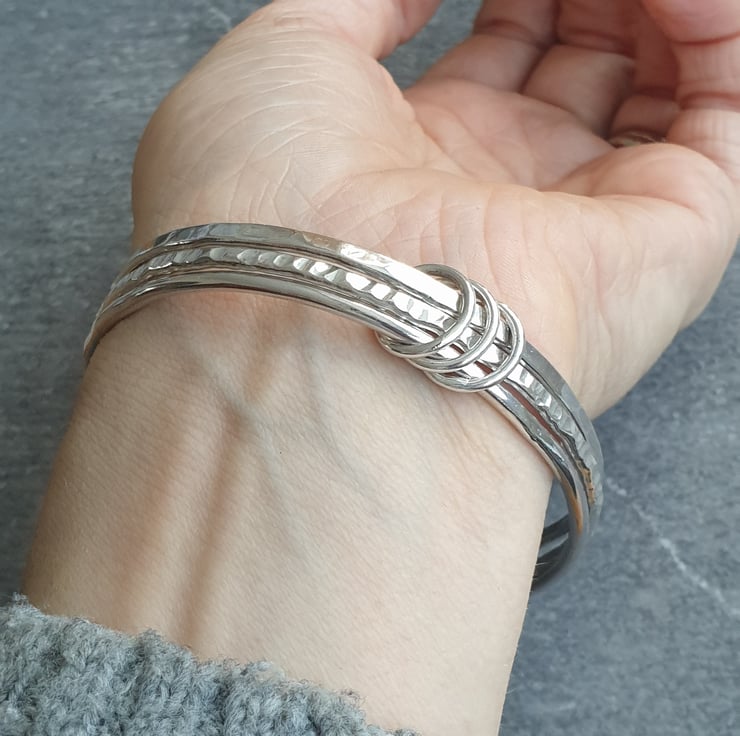 The linking rings and bangles can all move independently of one another so they sit in a different order - perfect for anyone who loves to play with their jewellery! I can also add more rings on if you wish, perhaps to suit a family group or special birthday.