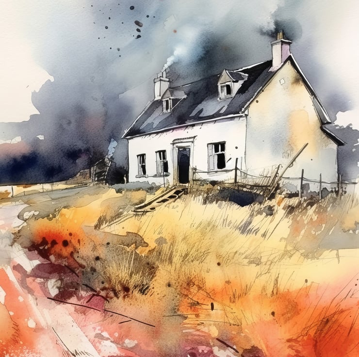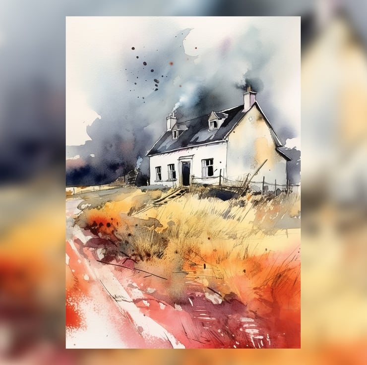 Bring a piece of tranquil country life into your home with our watercolor painting print featuring a serene farmhouse. This piece captures the rustic charm and peaceful atmosphere of a rural landscape, making it a delightful addition to any room.