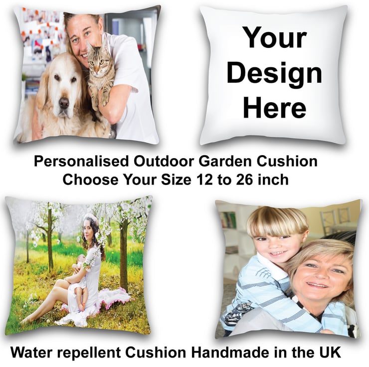 Personalised Outdoor Camping Garden Pillow Printed both sides Cushion, Photo Cushion Water repellent Cushion outdoor Garden Camping Cushion Picture Photo Cushion Design Your Own Cushion Photo Cushion Choose Your Size, Handmade with a zip for cover removal. Our Cushion are designed and Printed by us Aggie’s Bags in the UK, our covers are overlocked to give it strength and structure Lighter quality and so easier to sew but still tough, durable make perfect cushion Please Note – Water repellent, not water proof. Products made from this fabric will fade if left in direct sunlight permanently (either inside/outside) – they should be stored under cover after use.
