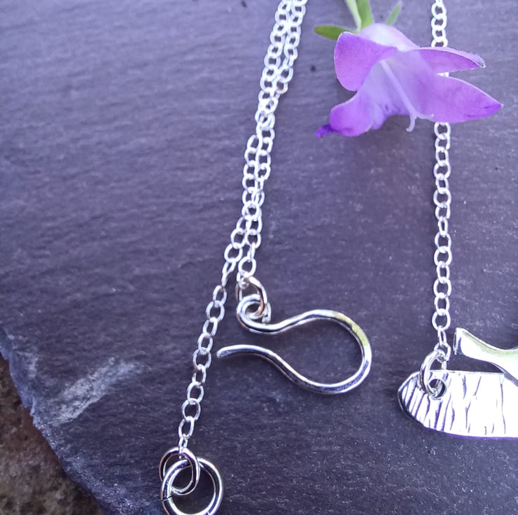 The perch is attached to an 46cm (18") trace chain, which is fastened with a handmade sterling silver hook.