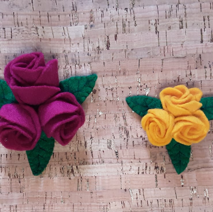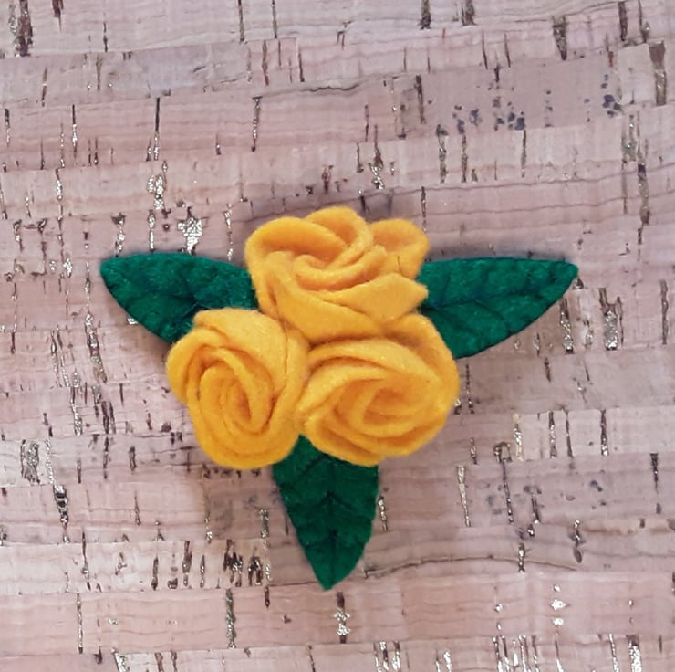 The main colour of the three roses is yellow with dark green leaves underneath.