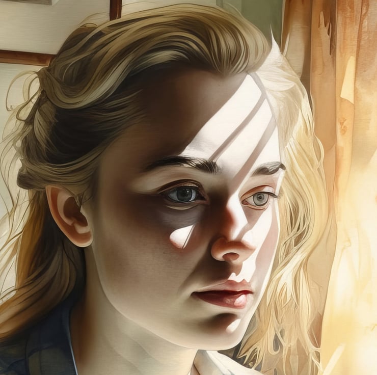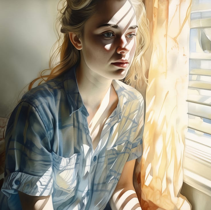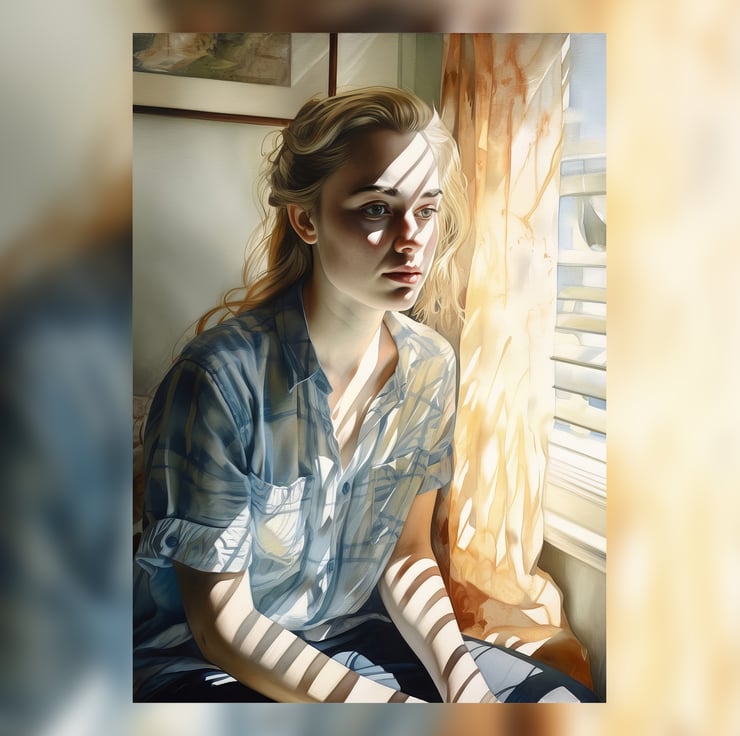 Immerse in introspection with our oil painting print featuring a study of a woman looking out of a window. This piece captures a moment of thoughtfulness, making it an inspiring addition to any room.