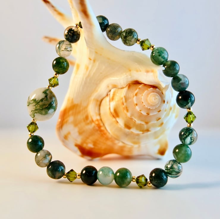 Moss Agate is believed to enhance tranquility and emotional balance.