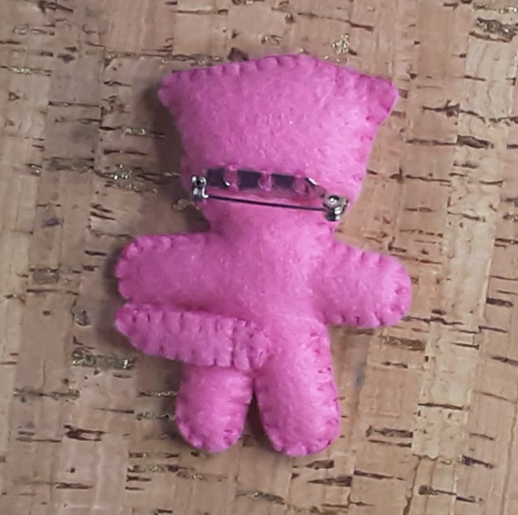 There is a brooch bar attached to the back of each brooch. It is lightly stuffed with toy stuffing.