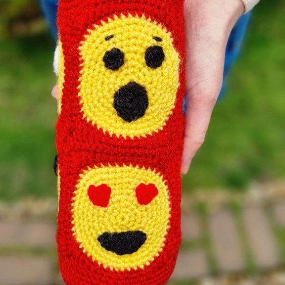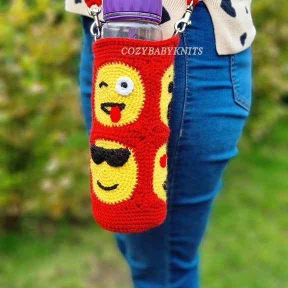 Crossbody bottle bag with 6 different emoji with removable strap.