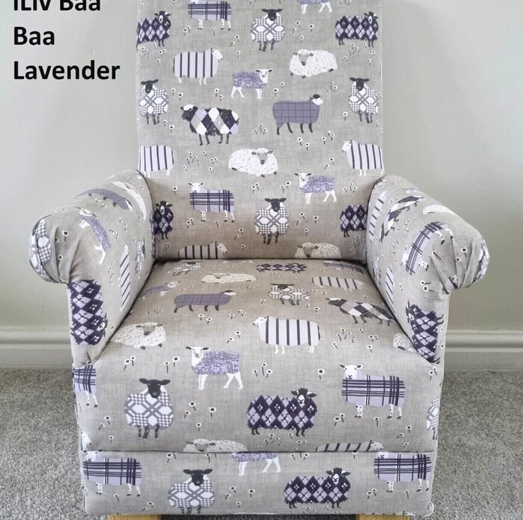 This is a sturdy, handcrafted childrens chair, which has been made by myself, a professional upholsterer with over 32 years experience, using iLiv Baa Baa Lavender fabric.