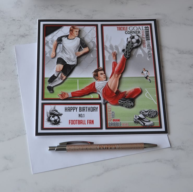 This is a luxury 3D handmade card for a birthday, perfect for any football soccer fan.