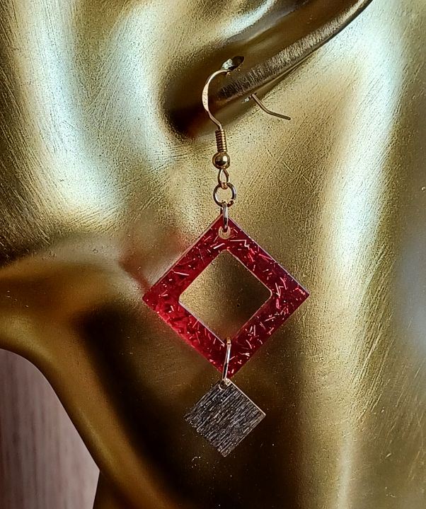 Resin I glitter I brass square drop I 925 plated gold hooks