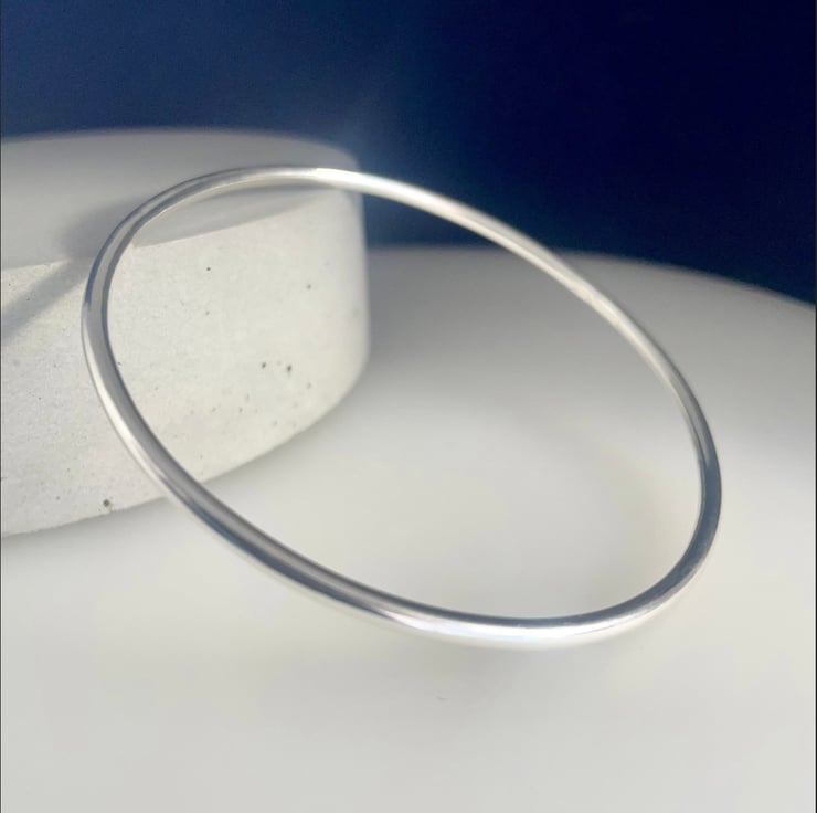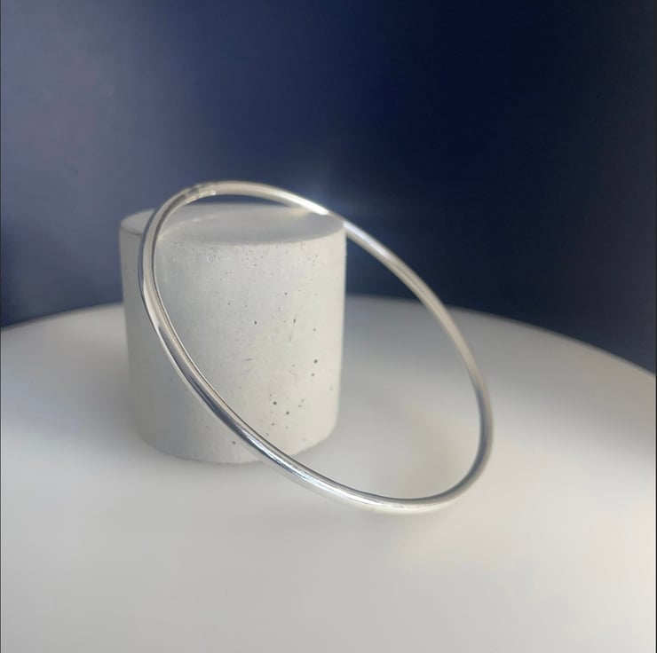 A lovely round stacking bangle handmade from 925 sterling silver. Cut by hand from solid 2.5mm silver round wire, formed into shape then worked to a plain smooth surface.