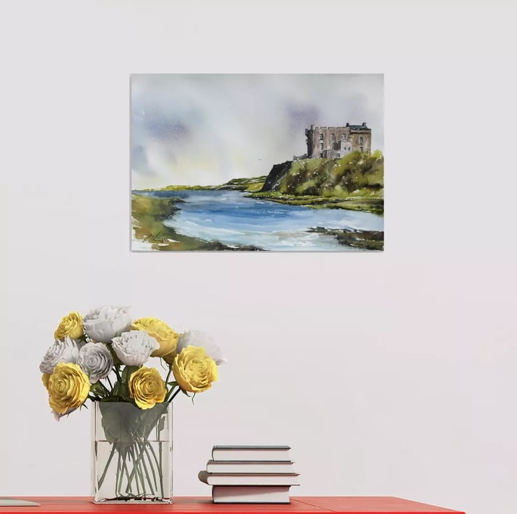 Dunvegan Castle, Isle of Skye, Scotland. Original Watercolour Painting. 420x210mm.