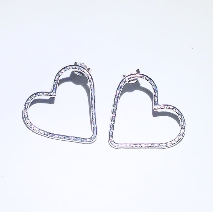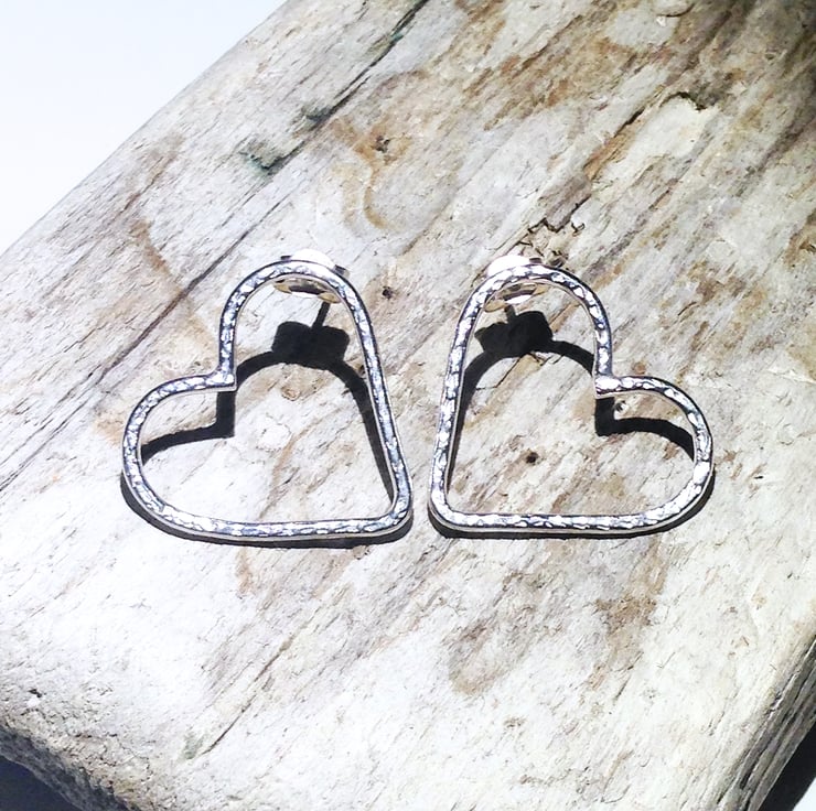 The hearts measure approximately 23 x 24 mm and the soldered sterling silver earring posts have scroll backs.
