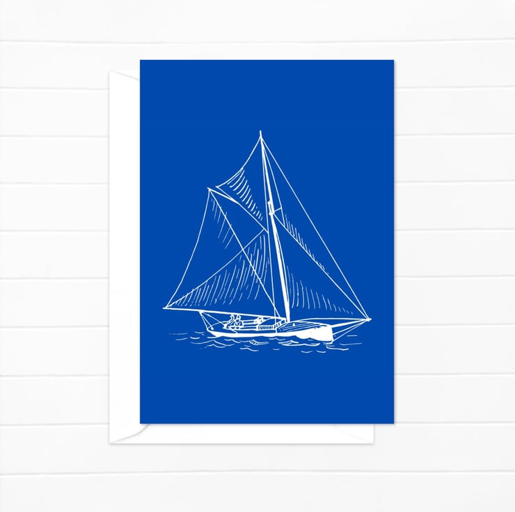 Boating artwork printed as an all occasion greetings card - tranquil days sailing on the Broads.