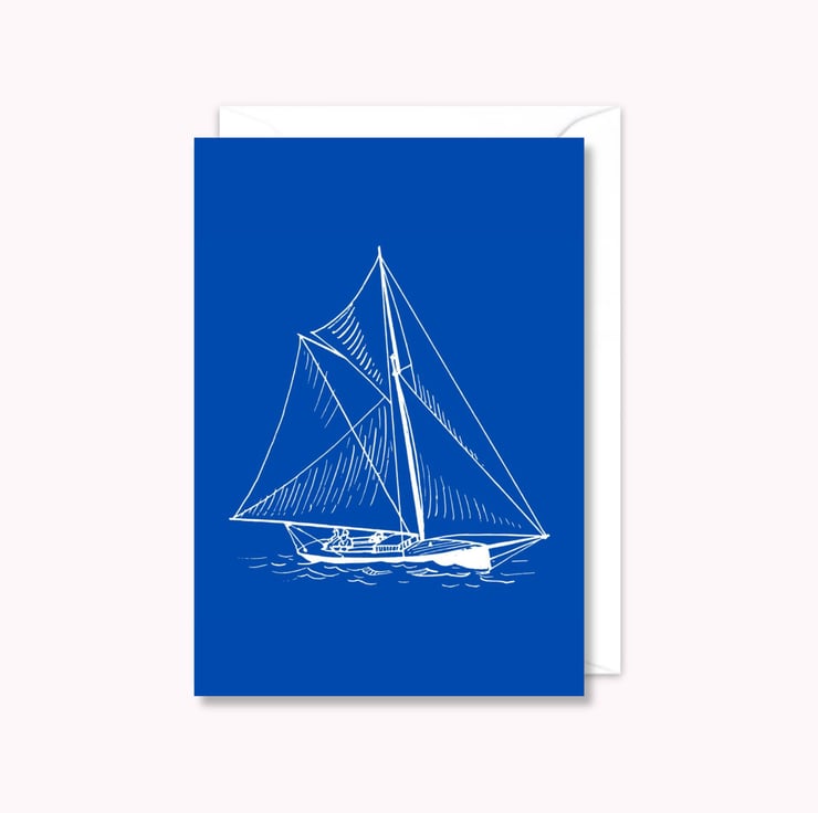 Boating artwork printed as an all occasion greetings card - tranquil days sailing on the Broads.